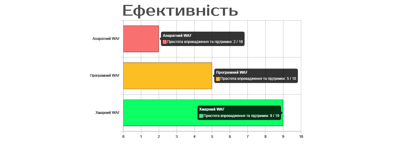 Нотатка: Для 95% бізнесів хмарний WAF (наприклад, від Cloudflare, Akamai, Sucuri) є оптимальним рішенням, що поєднує високу ефективність, простоту та доступну вартість.